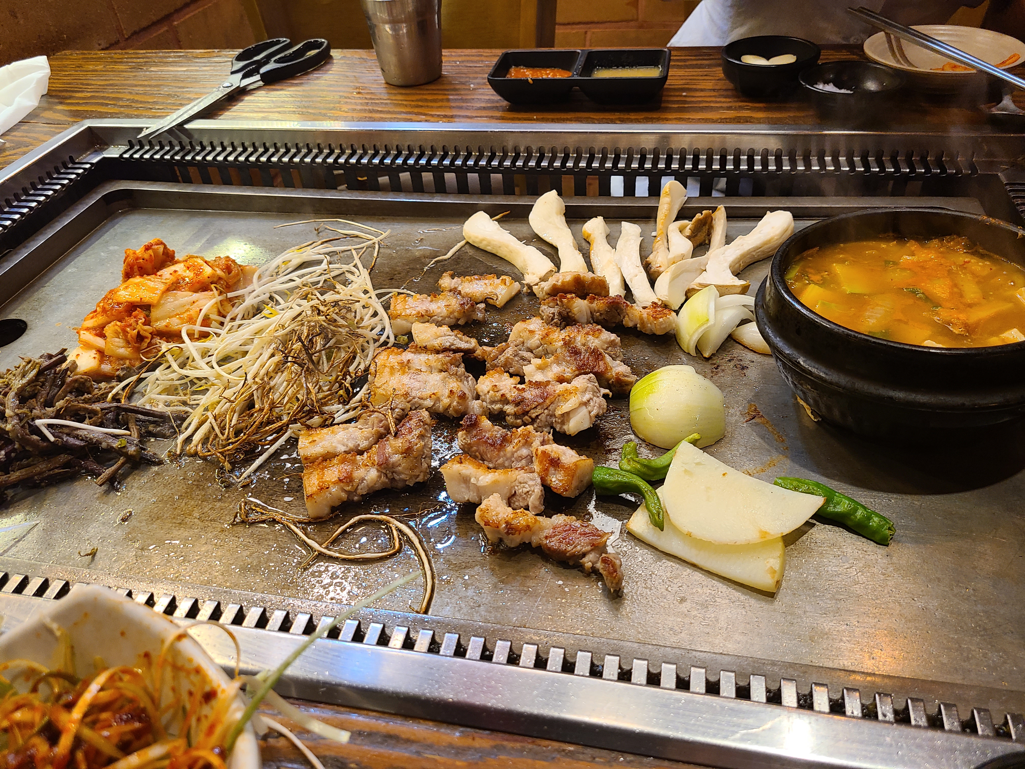 저희는 삼겹살 2인분, 된장찌개, 그리고 볶음밥, 볶음밥 치즈를 주문했습니다.