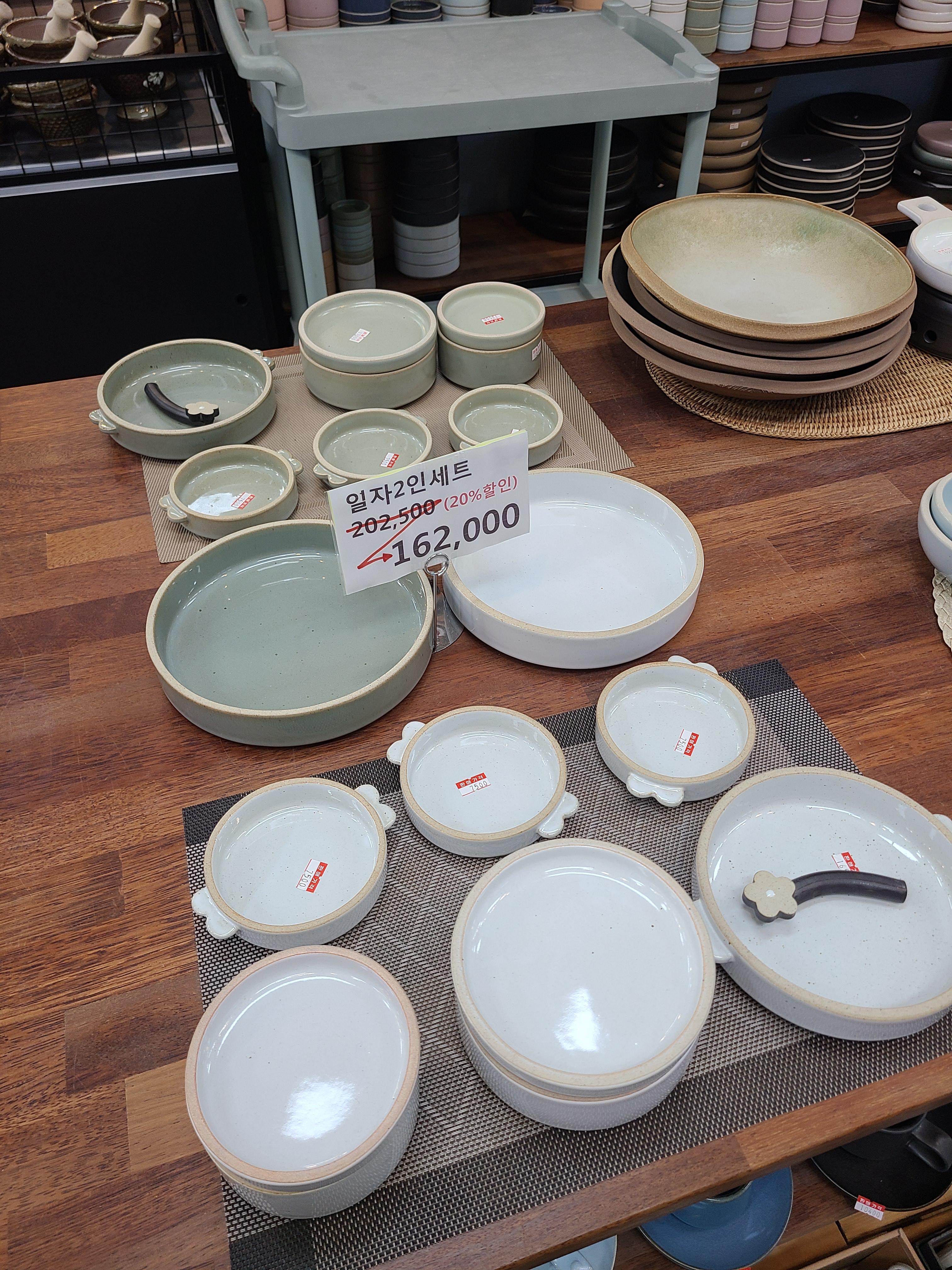 도자기 그릇세트들이 진열되어 있는데 일자2인세트의 가격은 162,000원!