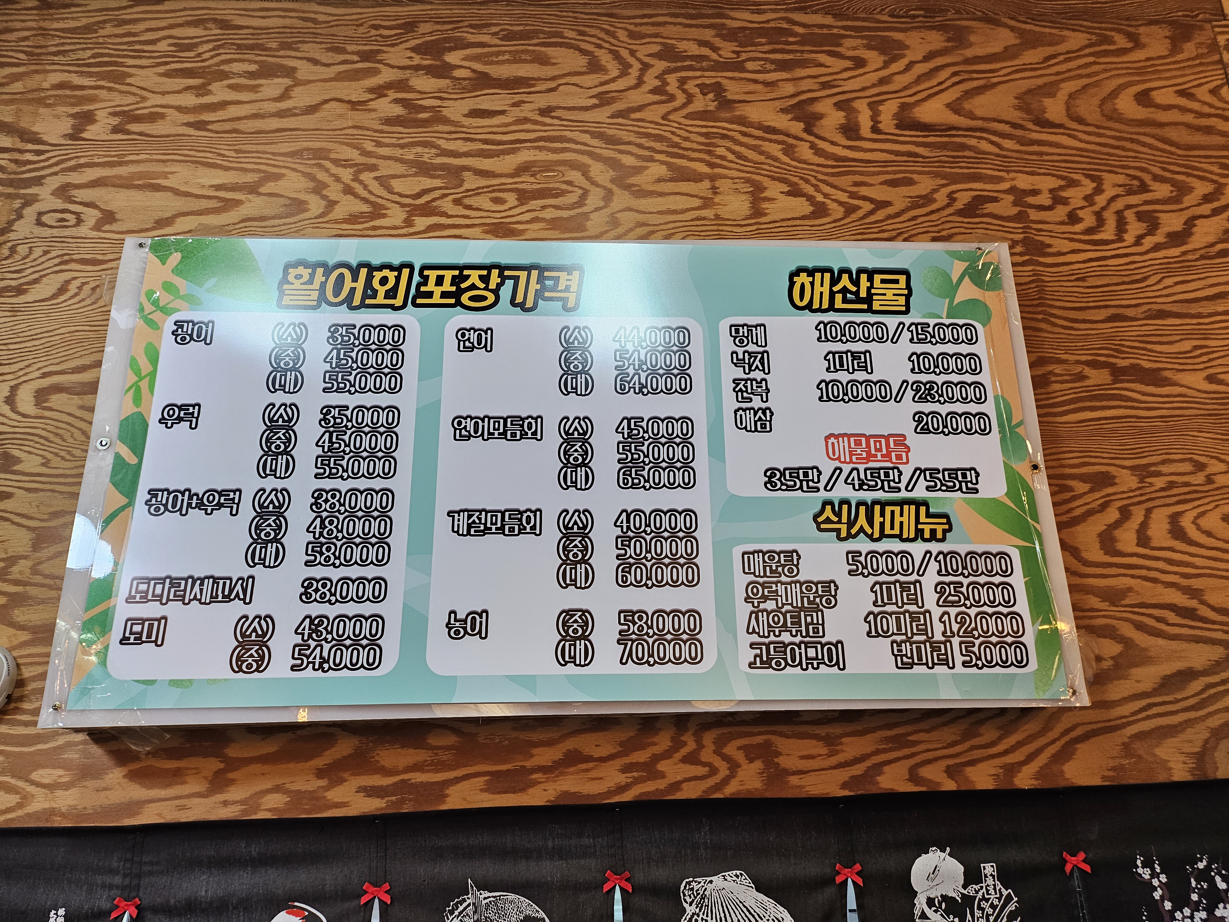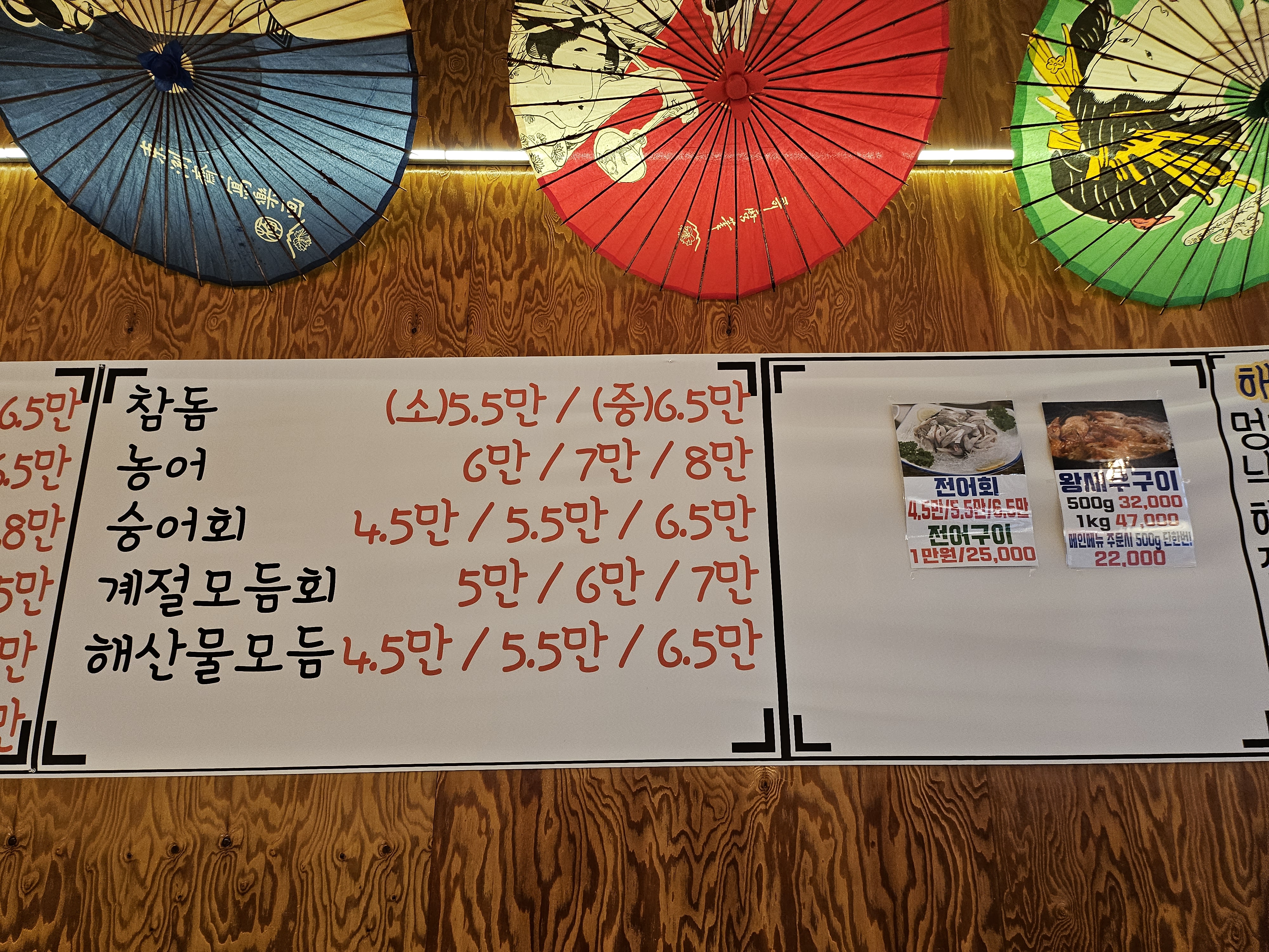 계절 모듬회가 매장에서는 5/6/7만원이면