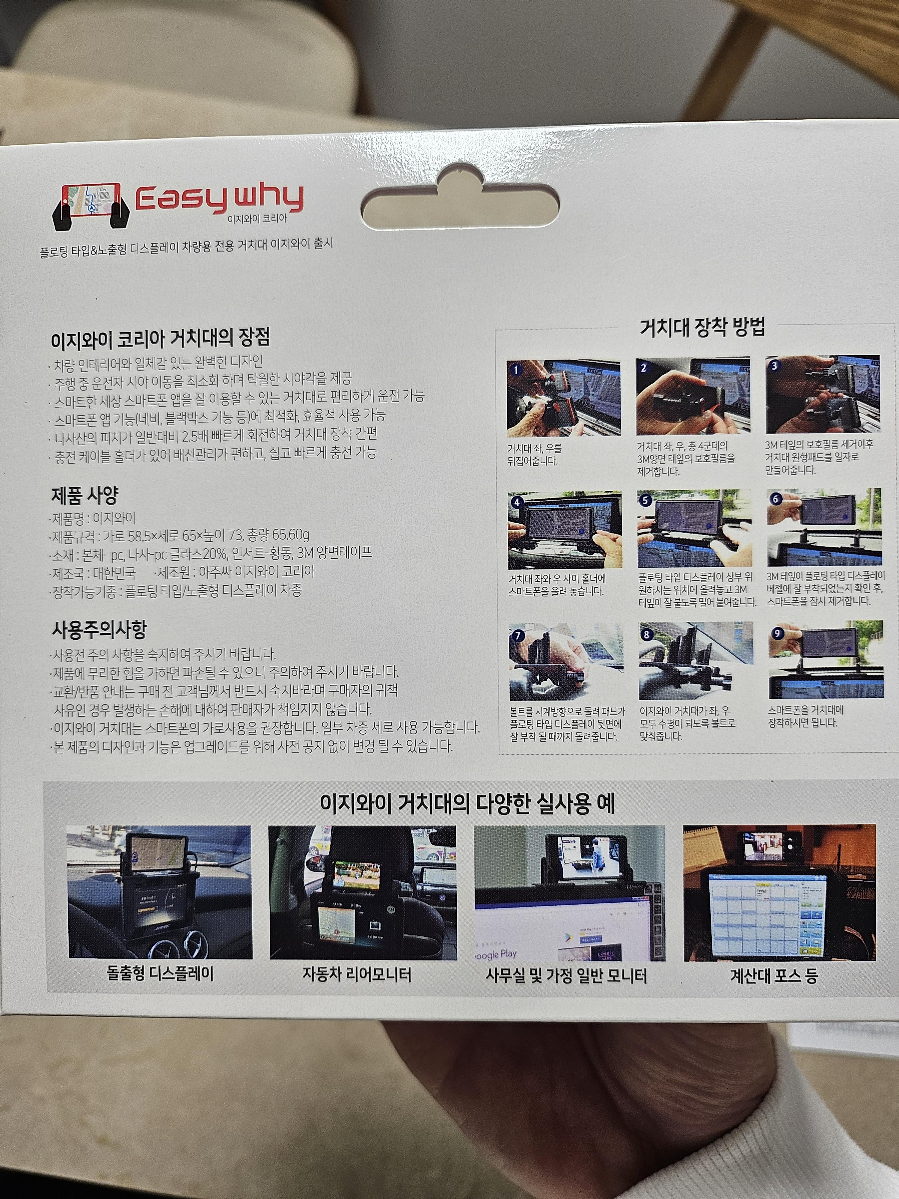 이지와이 거치대 구성품은 자동차 차량의 모습에 따라