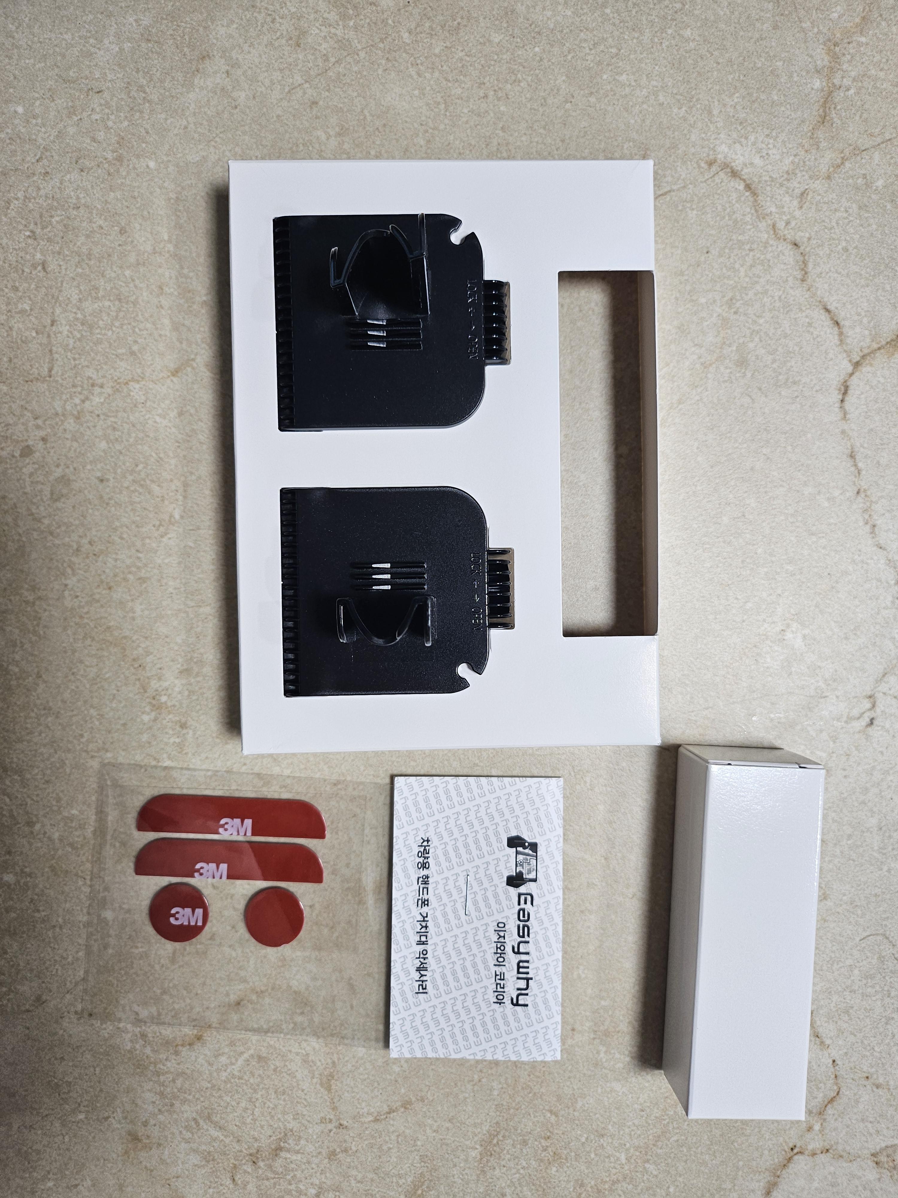 접착제 역할을 하는 3m테이프와 기본 구성품들로 구성되어 있습니다.