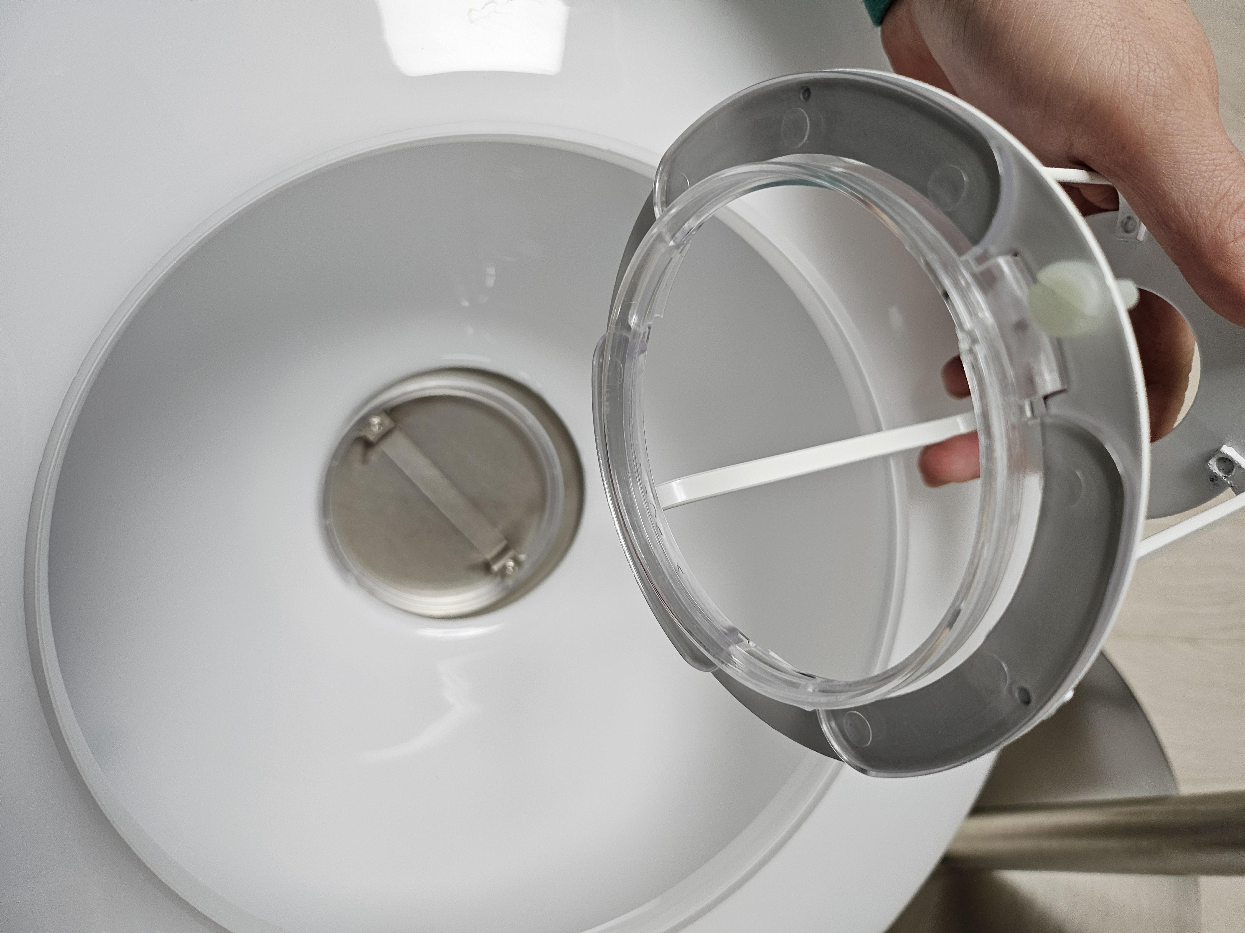 두개를 연결한 다음에 바닥 받침대에 돌돌 돌려서 끼워주세요