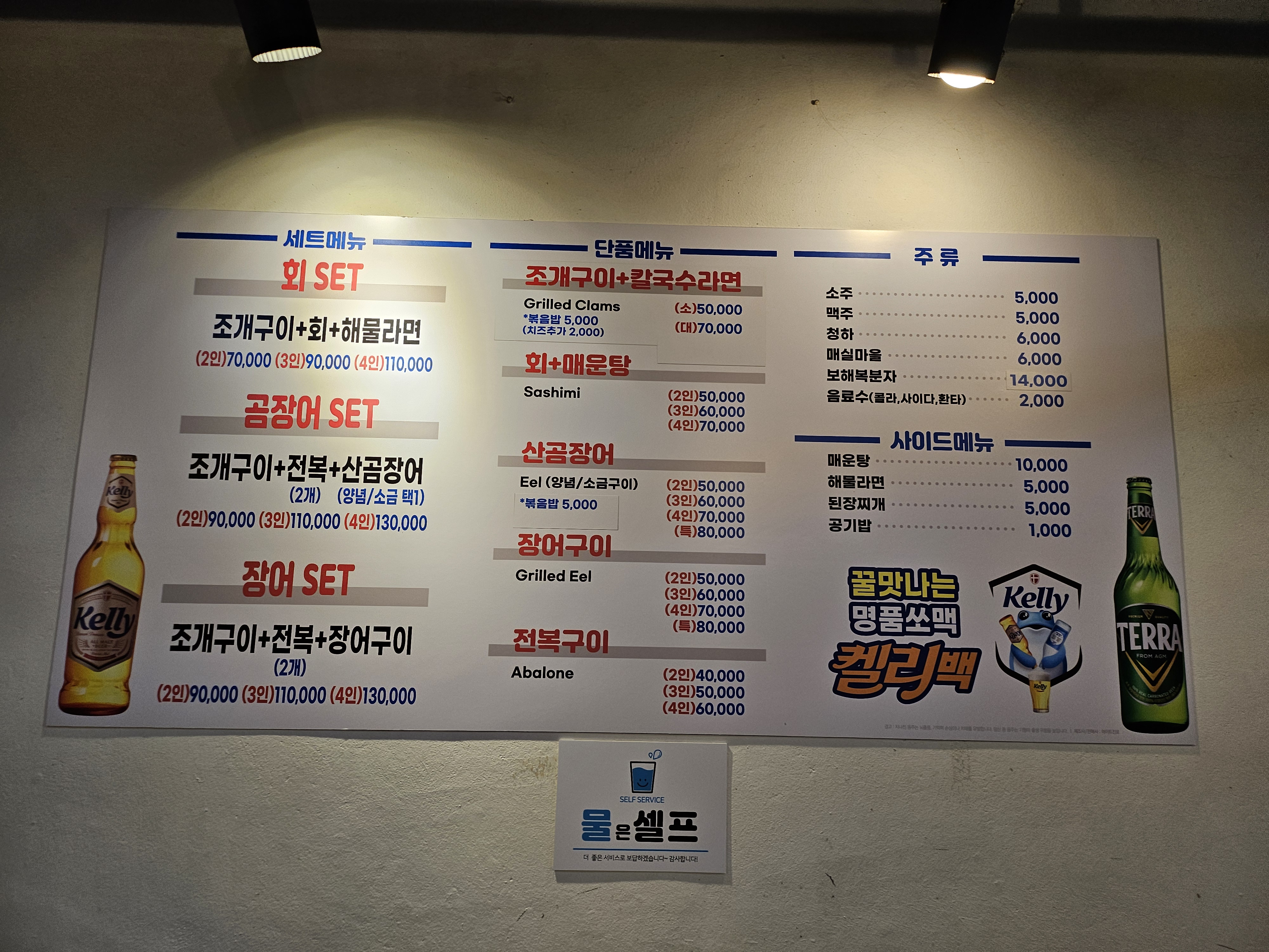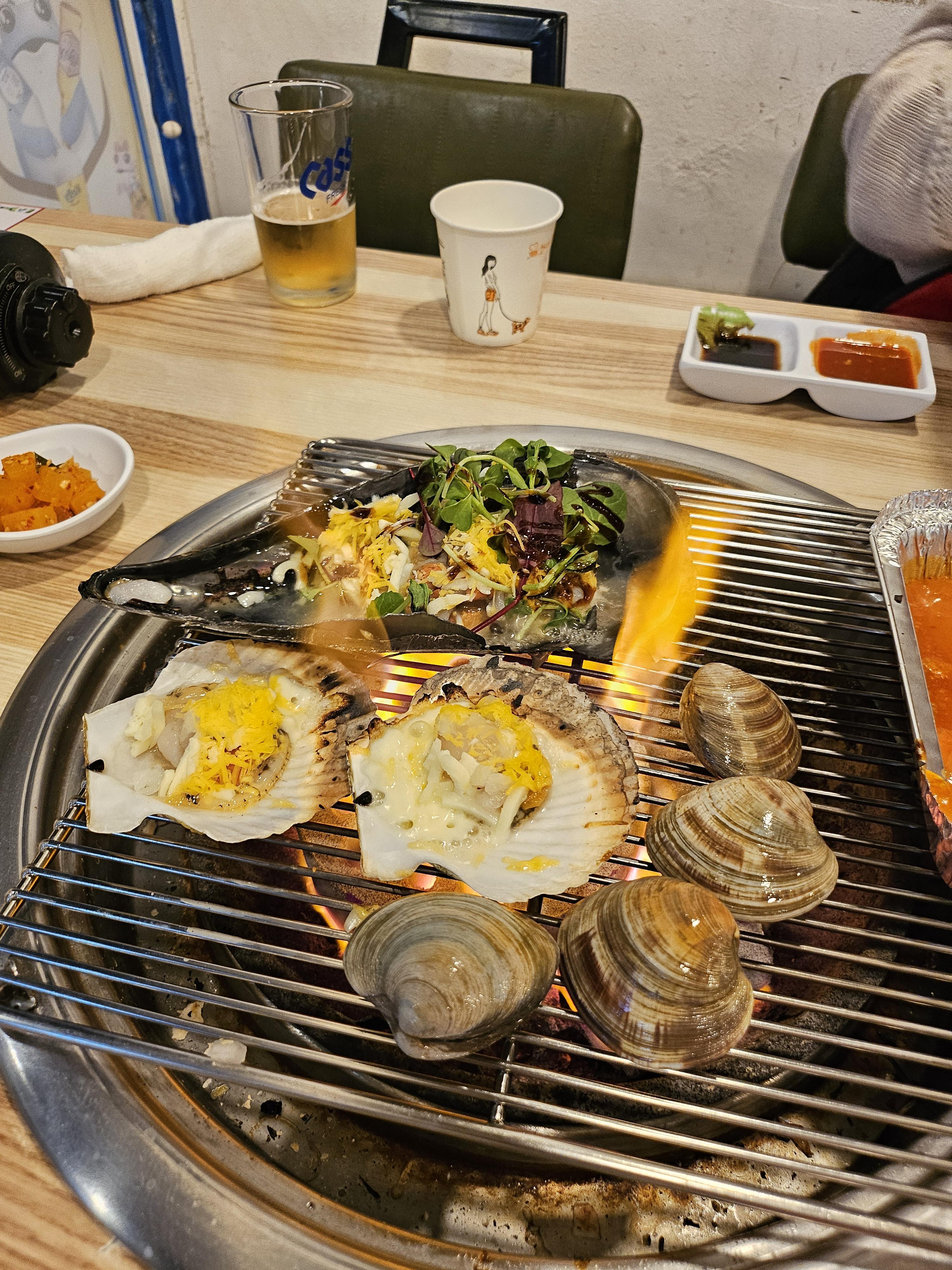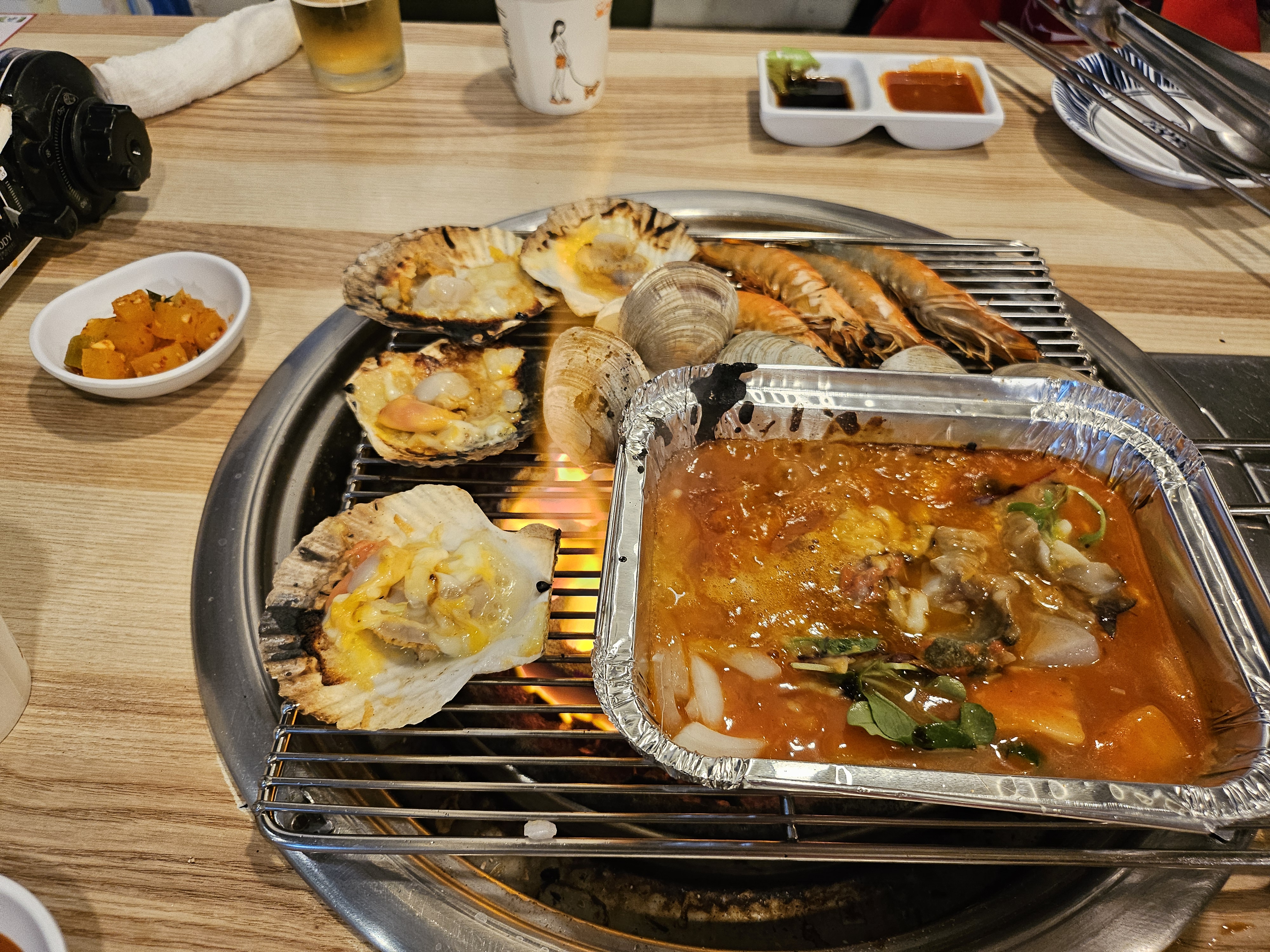 조개구이, 회, 해물라면을 같이 먹는 세트를 개인적으로 추천하고