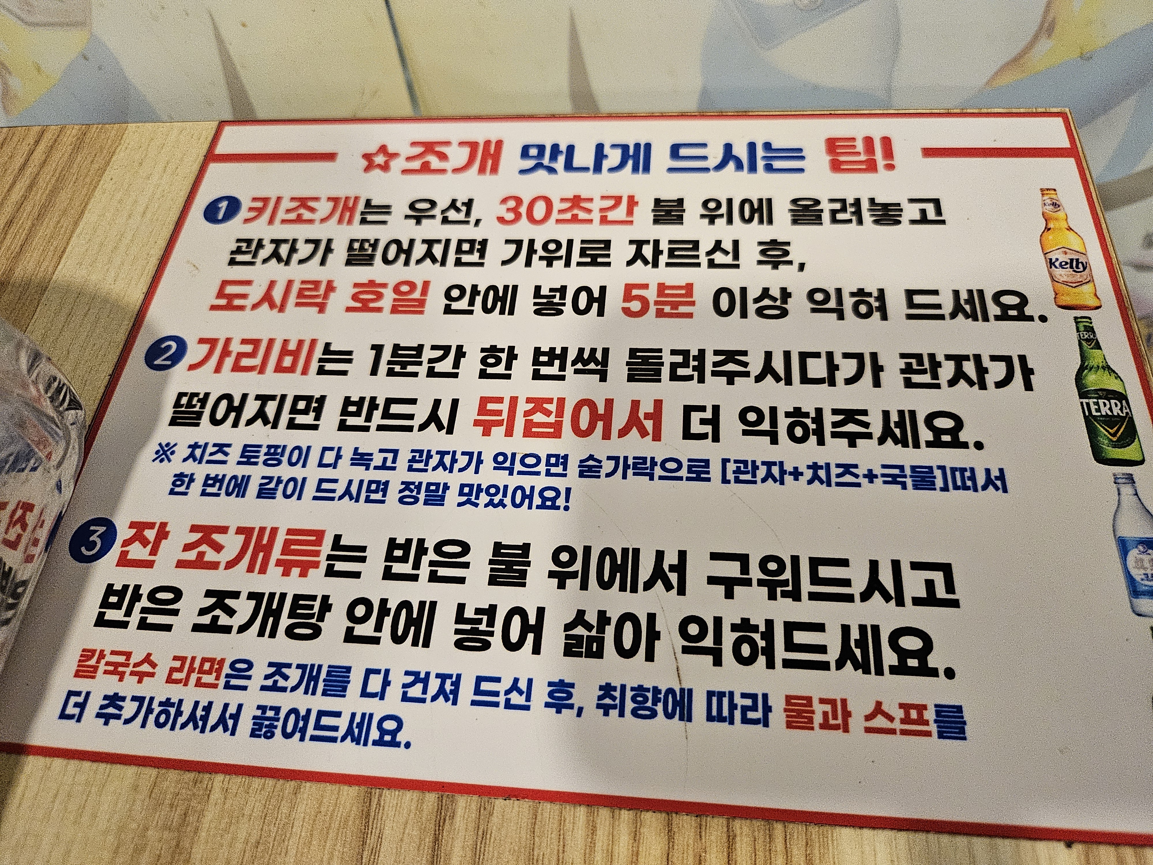 조개 맛나게 드시는 팁은 테이블에 부착되어 있어요